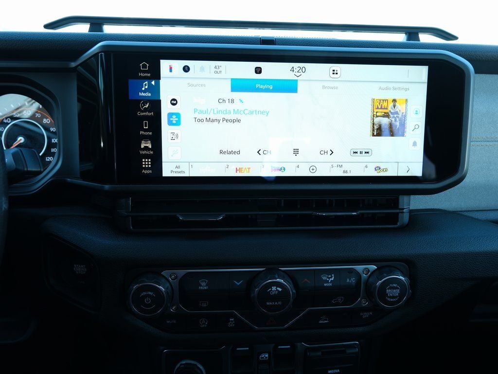When it comes to technology, the Gladiator Sport doesn't disappoint. Enjoy seamless connectivity with the Uconnect 5 system and its 12.3-inch display, complete with Apple CarPlay, Android Auto, and a 4G LTE Wi-Fi Hotspot. Stay informed and in control with the intuitive driver information display and steering wheel-mounted audio controls.