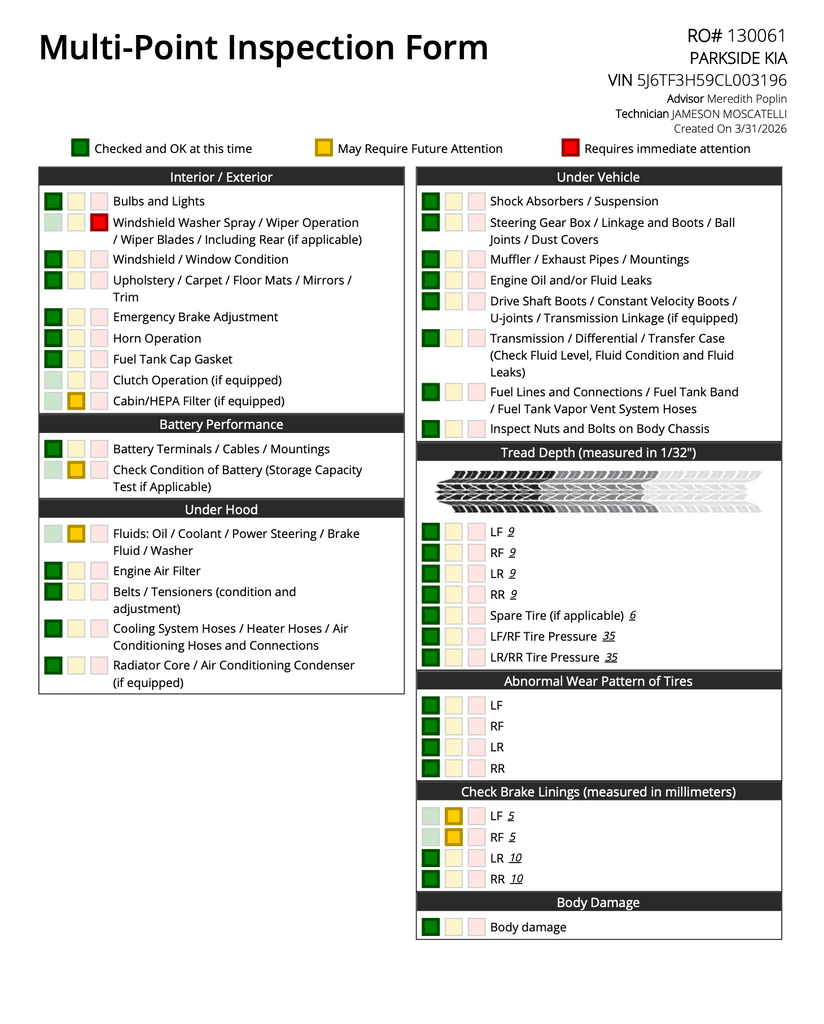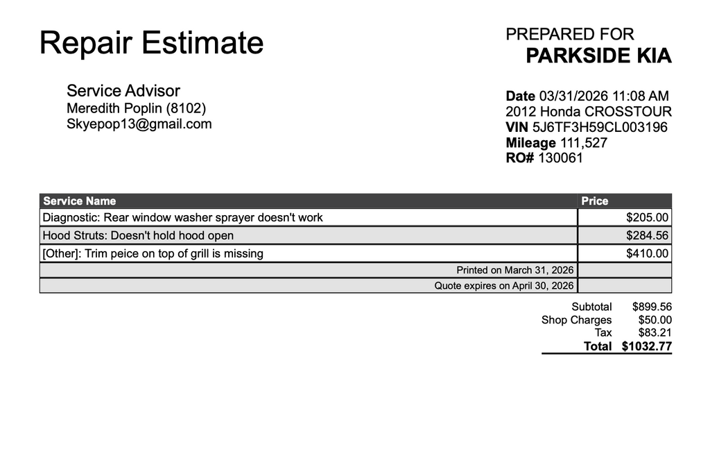 A repair estimate from our service department, should you prefer reconditioning through us