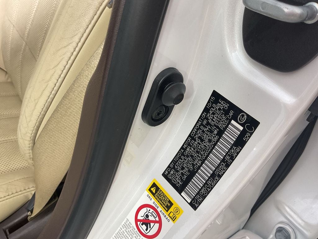 The Optional Features Included on this are: Accessory Package 2 (Cargo Net, Rear Bumper Applique, Trunk Mat, and Wheel Locks), Luxury Package w/Wood Trim (Embossed Leather Seat Trim, Heated & Ventilated Front Seats, Memory Driver Seat, Memory Exterior Mirrors, Memory Steering Wheel, Synthetic Leather Shift Lever, and Wood Trim), Navigation System Package (Lexus Enform App Suite and Lexus Enform Destinations), 10-Way Power Adjustable Front Seats, 17 x 7JJ Split 10-Spoke Aluminum Alloy Wheels, 17 x 7JJ Split 10-Spoke High Gloss Alum Alloy, 3 Spoke Leather & Wood Steering Wheel, 4-Wheel Disc Brakes, 8 Speakers, ABS brakes, Air Conditioning, Alloy wheels, AM/FM radio: SiriusXM, Anti-whiplash front head restraints, Auto-dimming door mirrors, Auto-dimming Rear-View mirror, Automatic High Beams, Automatic temperature control, Blind Spot Monitor w/Rear Cross Traffic Alert, Brake assist, Bumpers: body-color, CD player, Compass, Delay-off headlights, Driver door bin, Driver vanity mirror, Dual front impact airbags, Dual front side impact airbags, Electronic Stability Control, Emergency communication system: Safety Connect, Exterior Parking Camera Rear, Four wheel independent suspension, Front & Rear Intuitive Parking Assist, Front anti-roll bar, Front Bucket Seats, Front Center Armrest, Front dual zone A/C, Front fog lights, Front reading lights, Fully automatic headlights, Garage door transmitter: HomeLink, Heated door mirrors, High-Speed Dynamic Radar Cruise Control, Illuminated entry, Knee airbag, Leather Shift Knob, LED Low & High Beam Headlamps, Lexus Safety System Plus w/Bi-LED Headlamps, Low tire pressure warning, Occupant sensing airbag, One-Touch Power Trunk, Outside temperature display, Overhead airbag, Overhead console, Panic alarm, Passenger door bin, Passenger vanity mirror, Perforated NuLuxe Seat Trim, Power door mirrors, Power driver seat, Power moonroof, Power passenger seat, Power Rear Sunshade, Power steering, Power windows, Radio data system, Radio: Display Audio AM/FM/CD w/SiriusXM, Rain Sensing Intermittent Wipers w/Deicer, Rear anti-roll bar, Rear reading lights, Rear seat center armrest, Rear side impact airbag, Rear window defroster, Remote keyless entry, Security system, Speed control, Speed-sensing steering, Steering wheel mounted audio controls, Tachometer, Telescoping steering wheel, Tilt steering wheel, Traction control, Trip computer, Turn signal indicator mirrors, and Variably intermittent wipers.