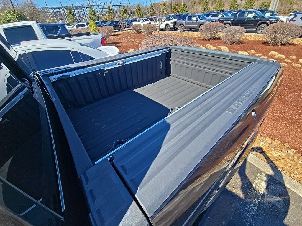 The full list of features includes: Chrome Bumper Package (Body Color Fender Flares, Bright Front Bumper, and Bright Rear Bumper), Quick Order Package 26V Limited (115V Auxiliary Power Outlet, 4-Corner Air Suspension, Black Closeout Trim, Body Color Front Fascia, Body Color Rear Bumper w/Step Pads, Bucket Seats, Center Hub, Chrome Belt Moldings, Chrome Bodyside Molding, Chrome Grille w/RAM Letters, Chrome Ram Badge, Folding Flat Load Floor Storage, Heated Front Seats, Heated Second Row Seats, Heated Steering Wheel, High Back Seats, Laramie Limited Cluster, Laramie Limited Group, Laramie Limited Leather Bucket Seats, Leather Wrapped Grab Handle, Limited Tailgate Applique 4x4, Luxury Door Trim Panel, Luxury Front & Rear Floor Mats, Power 10-Way Memory Driver & 6-Way Passenger Seats, Ram 1500 Badge, Rear 60/40 Split Folding Seat, Rear Window Defroster, Steering Wheel Mounted Audio Controls, Ventilated Front Seats, Wheel to Wheel Side Steps, Wheels: 20 x 9 Painted Aluminum Chrome Insert, and Wood/Leather Wrapped Steering Wheel), 1 Yr. Trial (Registration Required), 10 Speakers, 4 Adjustable Cargo Tie-Down Hooks, 4-Wheel Disc Brakes, 8.4 Touchscreen Display, ABS brakes, Active Grille Shutters, Adjustable pedals, Air Conditioning, Alloy wheels, AM/FM radio, Anti-Spin Differential Rear Axle, Audio Jack Input for Mobile Devices, Audio memory, Auto High-beam Headlights, Auto-dimming door mirrors, Auto-dimming Rear-View mirror, Automatic temperature control, Bed Cargo Divider/Extender, Brake assist, Bright Rotary Shifter, Class IV Receiver Hitch, Compass, Delay-off headlights, Driver door bin, Driver vanity mirror, Dual front impact airbags, Dual front side impact airbags, Electronic Shift, Electronic Stability Control, Electronically Controlled Throttle, Emergency communication system: Uconnect Access, Engine Oil Heat Exchanger, Front anti-roll bar, Front Bucket Seats, Front Center Armrest w/Storage, Front dual zone A/C, Front fog lights, Front reading lights, Front wheel independent suspension, Fully automatic headlights, Garage door transmitter, Genuine wood dashboard insert, Genuine wood door panel insert, GPS Antenna Input, HD Radio, Heated door mirrors, Heated front seats, Heated rear seats, Heated steering wheel, Heavy-Duty Engine Cooling, Hemi Badge, Illuminated entry, Integrated Voice Command w/Bluetooth®, Leather Shift Knob, Leather steering wheel, Low tire pressure warning, Manufacturer's Statement of Origin, Media Hub (USB, AUX), Memory seat, Navigation System, Occupant sensing airbag, Outside temperature display, Overhead airbag, Overhead console, Panic alarm, ParkView Rear Back-Up Camera, Passenger door bin, Passenger vanity mirror, Pedal memory, Power door mirrors, Power driver seat, Power Lumbar Adjust, Power passenger seat, Power steering, Power windows, Premium Filigree Leather Seats, Radio data system, Radio: Uconnect 3C Nav w/8.4 Display, Rain sensing wipers, RamBox Cargo Management System, Rear anti-roll bar, Rear seat center armrest, Rear step bumper, Remote keyless entry, Remote USB Port, Security system, SIRIUSXM Satellite Radio, SIRIUSXM Traffic, SiriusXM Travel Link, Speed control, Split folding rear seat, Steering wheel mounted audio controls, Tachometer, Tilt steering wheel, Tip Start, Traction control, Trip computer, Turn signal indicator mirrors, Uconnect Access, Variably intermittent wipers, Ventilated front seats, Voltmeter, and Wheels: 20 x 9 Aluminum Polish/Brown Insert.