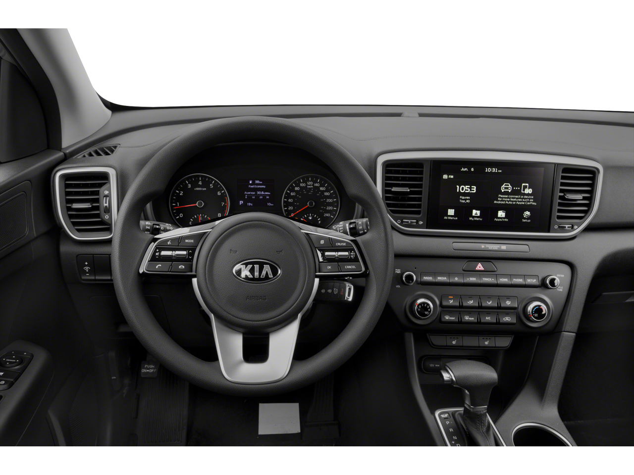 See what's behind you with the back up camera on this Kia Sportage. Bluetooth® technology is built into this vehicle, keeping your hands on the steering wheel and your focus on the road. It offers Apple CarPlay for seamless connectivity. The Kia Sportage offers Android Auto for seamless smartphone integration. Our dealership has already run the CARFAX report and it is clean. A clean CARFAX is a great asset for resale value in the future. This small suv emanates grace with its stylish gray exterior. Front wheel drive on this unit gives you better traction and better fuel economy. Maintaining a stable interior temperature in this model is easy with the climate control system. This small suv has a 4 Cyl, 2.4L high output engine. Enjoy the tried and true gasoline engine in this model. The Electronic Stability Control will keep you on your intended path. This vehicle features cruise control for long trips.
