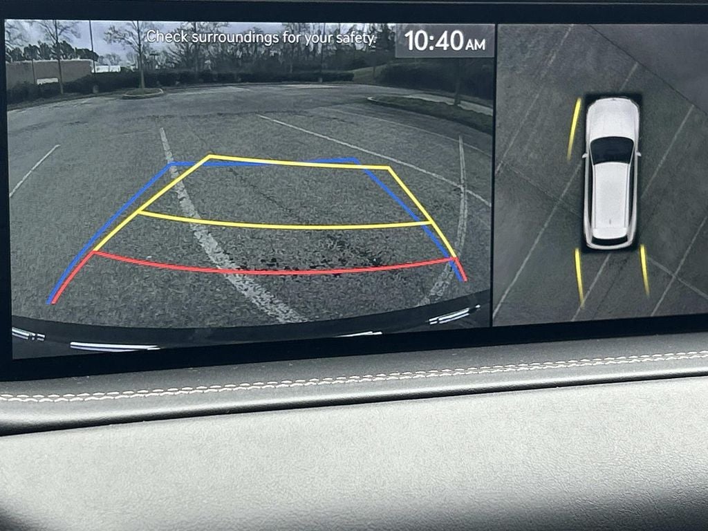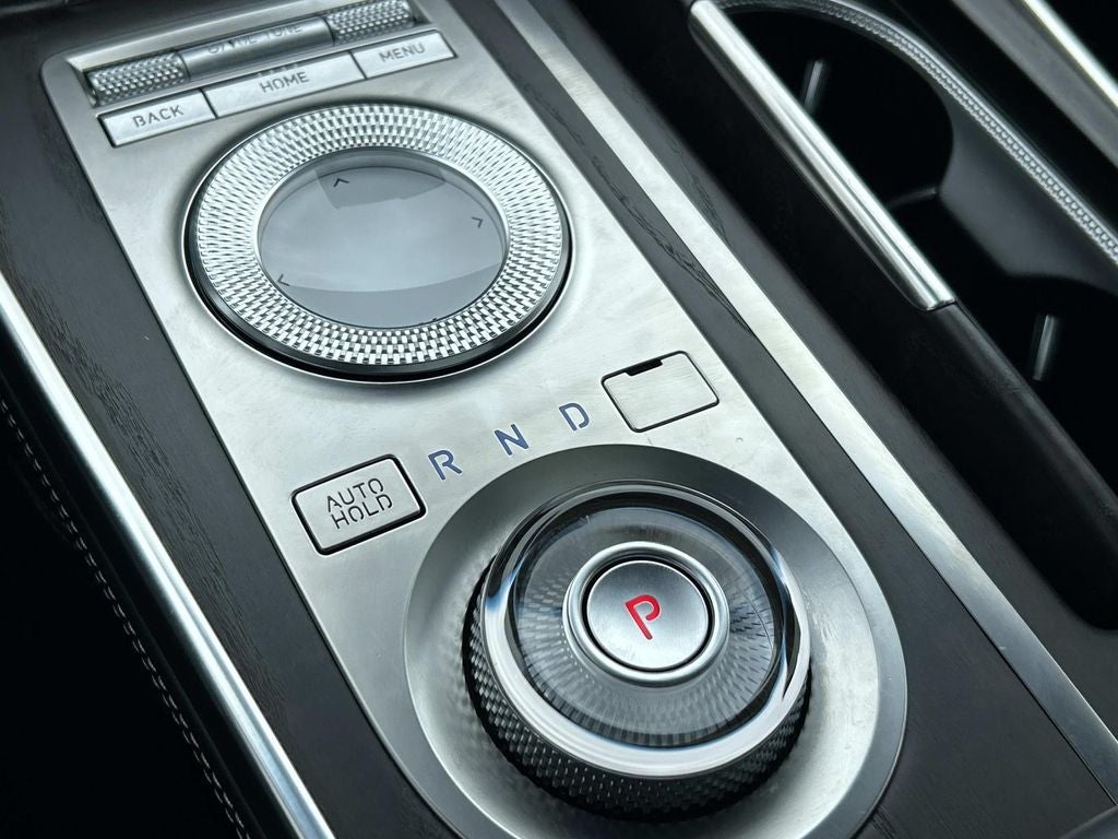 The full list of features includes: Prestige Package 07 (3-Zone Climate, Active Motion Seat, Blind-Spot View Monitor, Heads-Up Display, Heated 2nd Row Seats, Lexicon Premium Audio w/21-Speakers, Option Group 06, Power Driver Seat Bolster & Cushion Extension, Rear Parking Collision-Avoidance Assist, Remote Smart Parking Assist, and Surround View Monitor), 12 Speakers, 12.3 3D Digital Cluster, 2nd Row Vanity Mirrors, 3.909 Axle Ratio, 4-Wheel Disc Brakes, ABS brakes, Adaptive suspension, Air Conditioning, Alloy wheels, AM/FM radio: SiriusXM, Android Auto & Apple CarPlay, Anti-whiplash front head restraints, Auto High-beam Headlights, Auto tilt-away steering wheel, Auto-dimming door mirrors, Auto-dimming Rear-View mirror, Automatic temperature control, Brake assist, Bumpers: body-color, Compass, Delay-off headlights, Driver door bin, Driver vanity mirror, Dual front impact airbags, Dual front side impact airbags, Electronic Stability Control, Emergency communication system: Genesis Connected Services, Exterior Parking Camera Rear, Forward Attention Warning, Four wheel independent suspension, Front anti-roll bar, Front Bucket Seats, Front Center Armrest, Front dual zone A/C, Front reading lights, Fully automatic headlights, Garage door transmitter: HomeLink, Genuine wood console insert, Genuine wood dashboard insert, Genuine wood door panel insert, Heated & Ventilated Front Bucket Seats, Heated door mirrors, Heated front seats, Heated steering wheel, Illuminated entry, Knee airbag, Leather Seating Surfaces, Leather steering wheel, Leatherette Seating Surfaces, Low tire pressure warning, Memory seat, Microfiber Suede Headliner & Pillars, Nappa Leather Seating Surfaces, Navigation System, Occupant sensing airbag, Outside temperature display, Overhead airbag, Overhead console, Panic alarm, Passenger door bin, Passenger vanity mirror, Power 2nd Row Seat, Power Door Closure, Power door mirrors, Power driver seat, Power Liftgate, Power moonroof, Power passenger seat, Power Rear Side Window Shade, Power steering, Power windows, Radio data system, Radio: AM/FM/SiriusXM/HD Premium Audio System, Rain sensing wipers, Rear air conditioning, Rear anti-roll bar, Rear Electronic Limited Slip Differential, Rear reading lights, Rear seat center armrest, Rear side impact airbag, Rear window defroster, Rear window wiper, Remote keyless entry, Road Active Noise Cancellation, Security system, Speed control, Speed-sensing steering, Speed-Sensitive Wipers, Split folding rear seat, Spoiler, Steering wheel memory, Steering wheel mounted audio controls, Tachometer, Telescoping steering wheel, Tilt steering wheel, Traction control, Trip computer, Turn signal indicator mirrors, Variably intermittent wipers, Ventilated 2nd Row Outboard Seats, Ventilated front seats, Wheels: 20 x 8.5J Alloy, and Wheels: 22 x 9.5J Alloy.