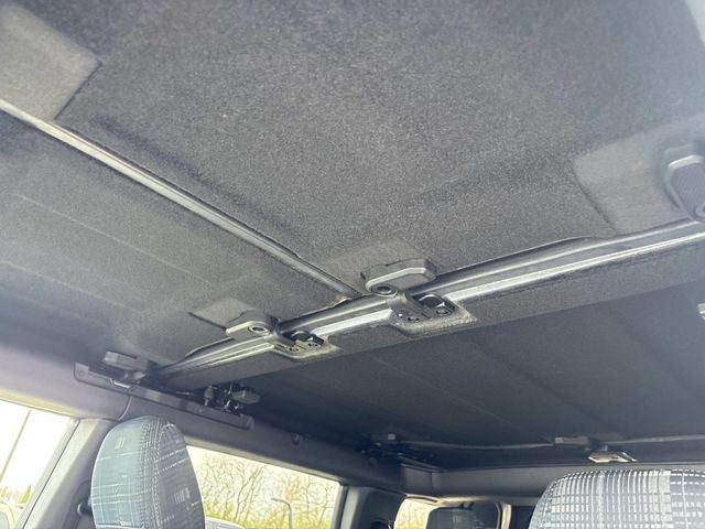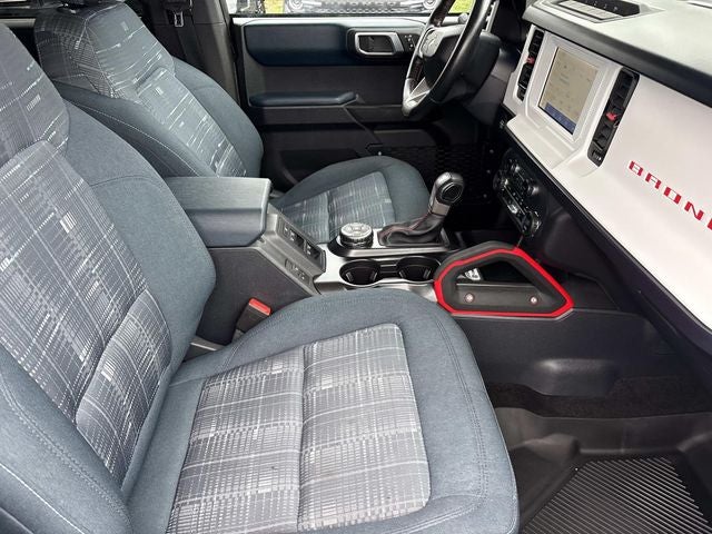 THIS VEHICLE INCLUDES THE FOLLOWING FEATURES AND OPTIONS: Equipment Group 622A Mid Package, Bronco Heritage Edition, Ford Blue Advantage: Blue Certified Certified, 4D Sport Utility, 2.7L EcoBoost V6, 10-Speed Automatic, 4WD, Carbonized Gray Metallic, Navy Pier w/Plaid Cloth Front Heated Bucket Seats, Convertible HardTop, Navigation system: Connected Navigation, 4-Wheel Disc Brakes, 4.7 Axle Ratio, 7 Speakers, ABS brakes, Air Conditioning, Alloy wheels, AM/FM radio: SiriusXM with 360L, AM/FM Stereo, Auto High-beam Headlights, Auto-dimming Rear-View mirror, Automatic temperature control, Brake assist, Compass, Connected Navigation, Convertible roof lining, Delay-off headlights, Driver door bin, Driver vanity mirror, Dual front impact airbags, Dual front side impact airbags, Electronic Stability Control, Emergency communication system: 911 Assist, Exterior Parking Camera Rear, Front anti-roll bar, Front Bucket Seats, Front Center Armrest, Front dual zone A/C, Front fog lights, Front reading lights, Front wheel independent suspension, Fully automatic headlights, Glass rear window, Heated door mirrors, Heated front seats, Illuminated entry, Integrated roll-over protection, Leather Shift Knob, LED Signature Lighting, Low tire pressure warning, Occupant sensing airbag, Outside temperature display, Overhead airbag, Overhead console, Panic alarm, Passenger door bin, Passenger vanity mirror, Plaid Cloth Front Heated Bucket Seats, Power door mirrors, Power steering, Power windows, Radio data system, Rear window wiper, Remote keyless entry, Security system, SiriusXM Radio w/360L, Speed control, Split folding rear seat, Steering wheel mounted audio controls, SYNC 4, Tachometer, Telescoping steering wheel, Tilt steering wheel, Towing Capability, Traction control, Trip computer, Variably intermittent wipers, and Wheels: 17 Unique White.