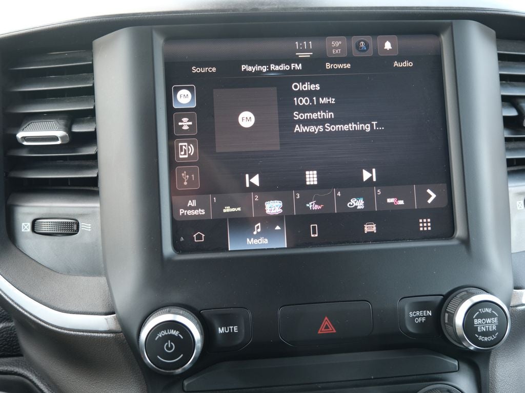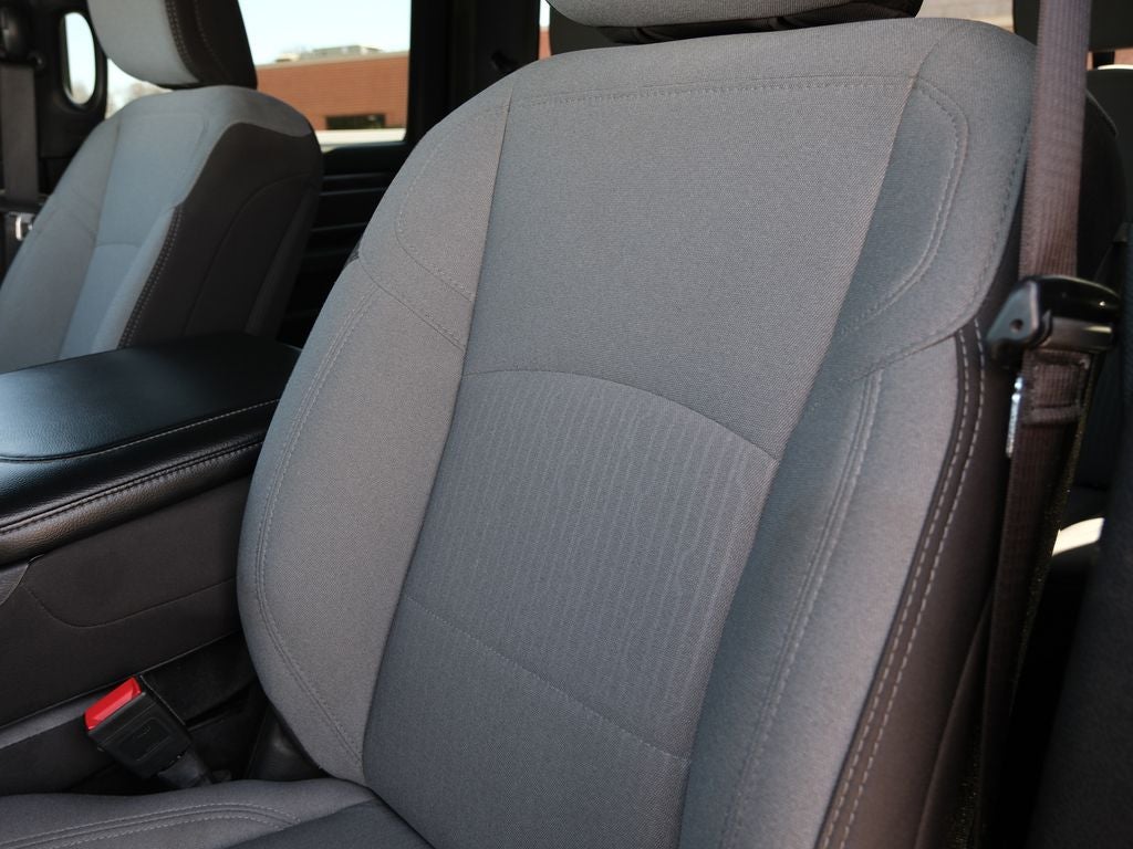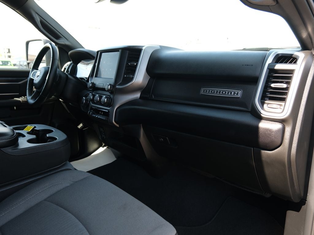 The interior of this Big Horn model is equally impressive, with premium cloth upholstery, a leather-wrapped steering wheel, and a user-friendly Uconnect infotainment system with an 8.4-inch touchscreen display. Stay connected and entertained with features like Apple CarPlay, Android Auto, and SiriusXM satellite radio.
