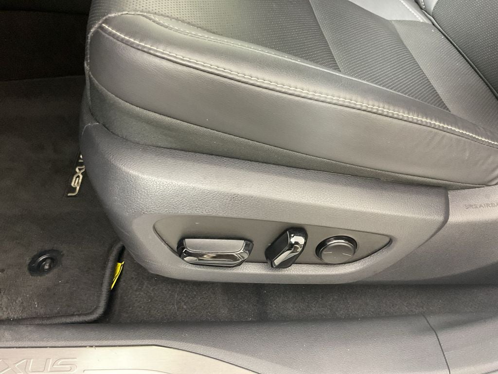 The Optional Features Included on this are: Technology Package, 12 Speakers, 19 5-Spoke Alloy Wheels, 4-Wheel Disc Brakes, ABS brakes, Air Conditioning, Alloy wheels, AM/FM radio: SiriusXM, Anti-whiplash front head restraints, Auto High-beam Headlights, Auto-dimming door mirrors, Auto-dimming Rear-View mirror, Automatic temperature control, Brake assist, Bumpers: body-color, Compass, Delay-off headlights, Driver door bin, Driver vanity mirror, Dual front impact airbags, Dual front side impact airbags, Electronic Stability Control, Emergency communication system: Safety Connect (10-year trial), Exterior Parking Camera Rear, Four wheel independent suspension, Front anti-roll bar, Front Bucket Seats, Front Center Armrest, Front dual zone A/C, Front fog lights, Front reading lights, Fully automatic headlights, Garage door transmitter: HomeLink, Genuine wood console insert, Heated door mirrors, Heated Front Bucket Seats, Heated front seats, Illuminated entry, Leather Shift Knob, Leather steering wheel, Low tire pressure warning, Navigation System, NuLuxe Seat Trim, Occupant sensing airbag, Outside temperature display, Overhead airbag, Overhead console, Panic alarm, Passenger door bin, Passenger vanity mirror, Power door mirrors, Power driver seat, Power Liftgate, Power passenger seat, Power steering, Power windows, Radio data system, Radio: Lexus Interface w/9.8 HD Touchscreen Display, Rain sensing wipers, Rear air conditioning, Rear anti-roll bar, Rear Parking Sensors, Rear reading lights, Rear seat center armrest, Rear side impact airbag, Rear window defroster, Rear window wiper, Remote keyless entry, Security system, Speed control, Speed-sensing steering, Split folding rear seat, Spoiler, Steering wheel mounted audio controls, Tachometer, Telescoping steering wheel, Tilt steering wheel, Traction control, Trip computer, Turn signal indicator mirrors, Variably intermittent wipers, and Wireless Apple CarPlay/Wireless Android Auto.