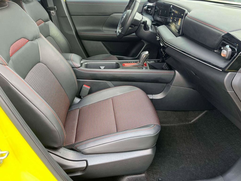 Step inside the 2025 Kicks SR and you'll be greeted by a well-appointed cabin that caters to your every need. The sport cloth/leatherette seat trim, leather-wrapped steering wheel, and available heated door mirrors create an environment of refined comfort and convenience. The 6-speaker audio system, complete with Sirius radio and steering wheel-mounted controls, ensures your musical enjoyment is always at your fingertips.